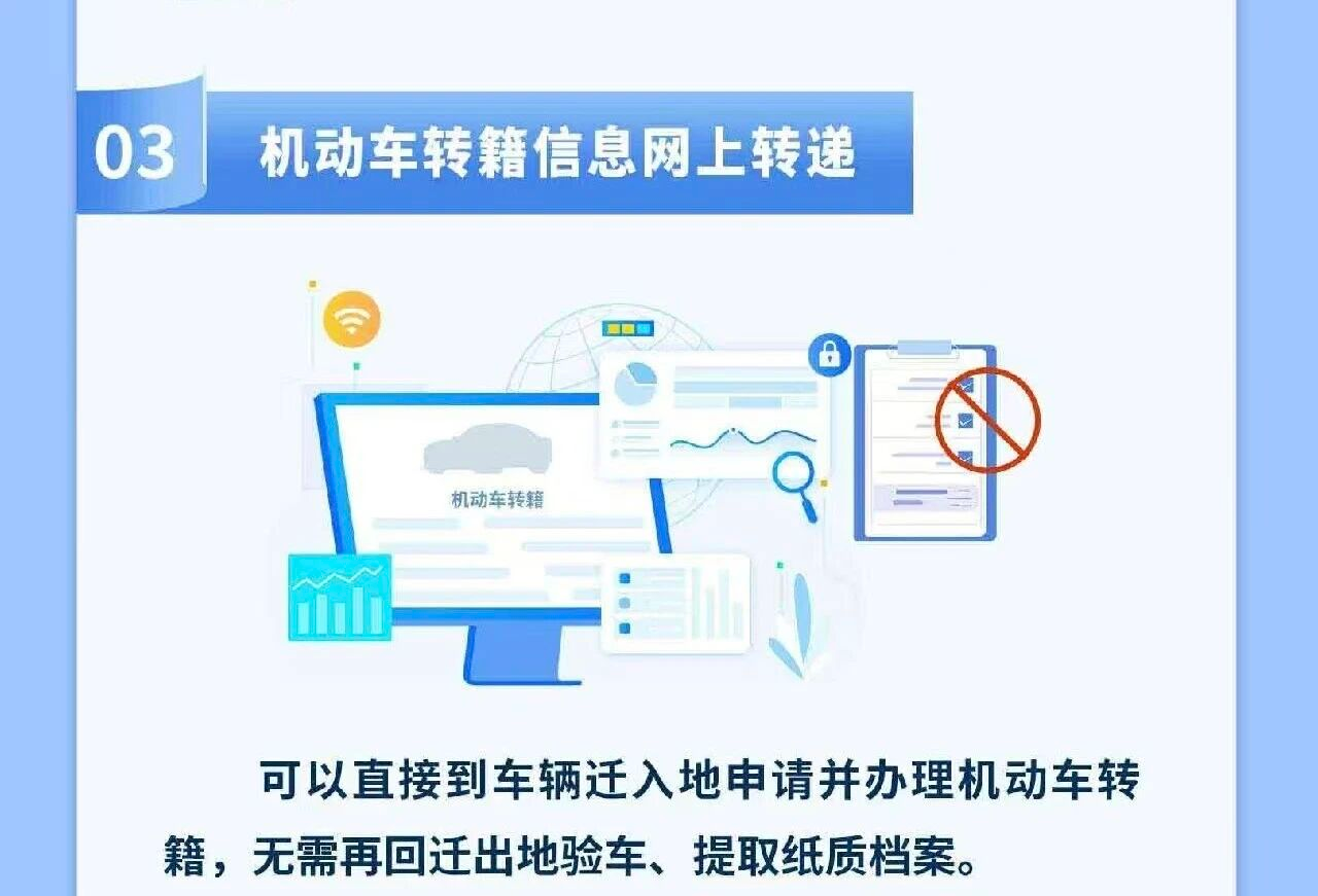以往车辆异地转籍需返回原登记地验车提档,现通过电子档案流转,车主在转入地即可一站式办结。