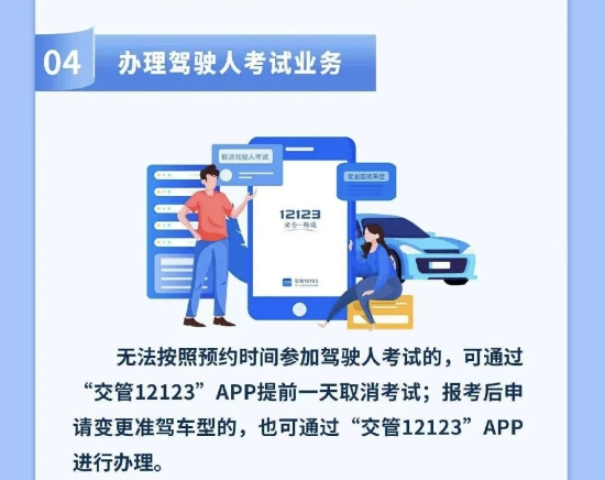 考生如遇突发情况无法按时参加考试,或需变更准驾车型,均可通过“交管12123”App在线办理取消预约或车型转换。现已累计为1003名考生办理该项业务。