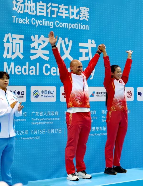 谈及争先赛的夺冠瞬间,苑丽颖的眼神依旧发亮。“和计时赛的独自冲刺不同,争先赛每一秒都在博弈。”她回忆起决赛中的关键超越,语气坚定地告诉记者,“对手的爆发力很强,在赛场上,我瞅准时机从外线加速,耳边只剩风的呼啸和观众的呐喊,拼尽全身力气冲过终点线。”赛场的灯光下,她紧握车把的双手仍带着发力后的泛红,这份极致专注与果断,正是她制胜的关键。