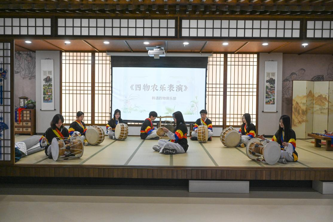 作为文化传承与国际传播的桥梁,地球村始终坚守“做好中国人”的根脉。20余门文化通识课搭建起文明互鉴的平台,“铸牢中华民族共同体意识体验馆”让家国情怀生根发芽;“优秀中国故事”多语种资源库积累500余个素材,短视频大赛、多语种演讲比赛等活动,让学生成为中华文化的传播者。从长春市中小学研学基地到国家留学基金委“感知中国”实践基地,这里年均接待数千名访客,让多元文化之花越开越艳。
