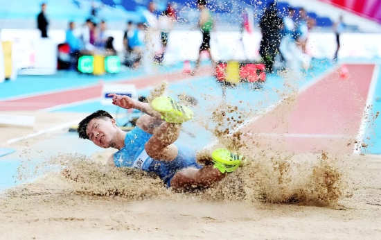 舒衡在田径跳远赛场以8.17米的优异成绩力压群雄,实现吉林省跳远项目全运金牌历史性跨越,用跳跃丈量梦想高度。