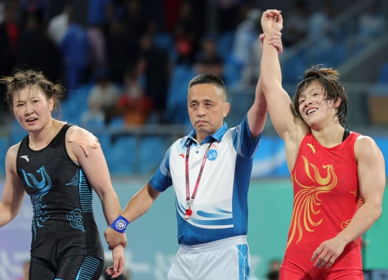 女子自由式摔跤赛场,张骐沉着应战、敢打敢拼,用汗水取得了我省该项目全运会金牌“零”的突破,让吉林力量在摔跤赛场熠熠生辉。
