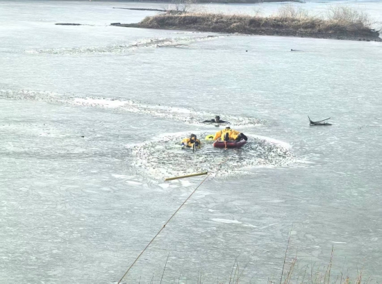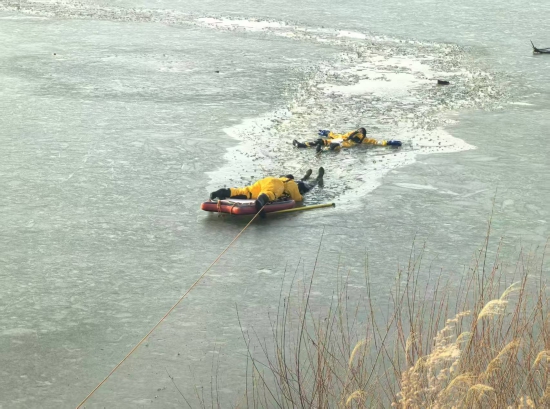 11月23日13时许,长春市消防救援支队九台大队接到报警:九台区胜利桥下饮马河一名男子不慎坠入冰窟,情况危急。大队立即调派迎宾路消防救援站指战员携带专业救生器材火速赶赴现场。