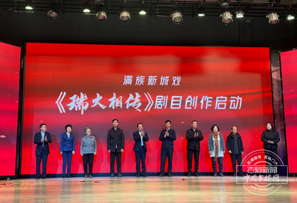 11时,现场气氛推向高潮。与会领导、嘉宾与主创代表一同上台,手按启动装置。随着“瑞火相传”主题灯效点亮,满族新城戏《瑞火相传》剧目创作正式启动。