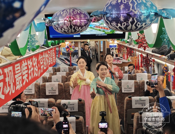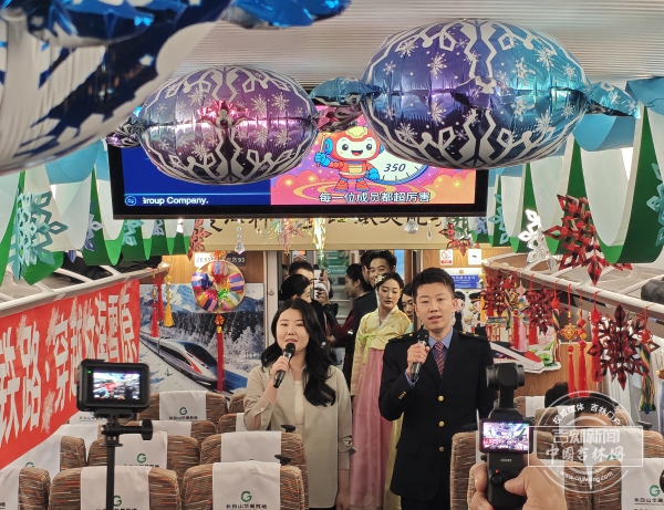 该列车由国铁沈阳局沈阳客运段担当乘务,来自网络和传统媒体的80余名记者也随车参加“发现最美铁路·穿越最美铁路”活动。精心布置的车厢以冬雪和长白为背景使活动主题更加突出,悬挂的一个个精美小饰品增加了欢乐的氛围。