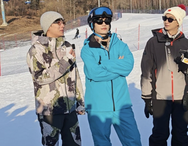 下午艺人们在天定山滑雪场切换成“速度与激情”模式