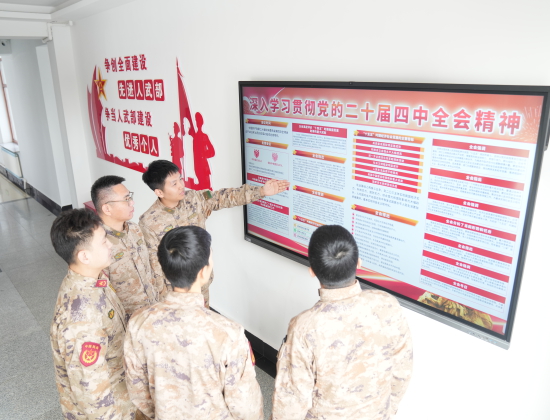 通过制作“一图解说”LED电子宣传板报,营造“处处可学、时时能学”的浓厚氛围。充分利用党日活动、专武干部培训会、民兵骨干学习会等时机集中原原本本传达学习全会公报及有关新闻报道,让全会精神精准传递到基层末端。充分发挥相关辅导教材和“学习强军”“军职在线”等学习平台,引导全体人员跟进学习解放军报、人民日报等发布的系列评论员文章等权威解读,全视野、多维度把握全会精神内核和理论精髓。