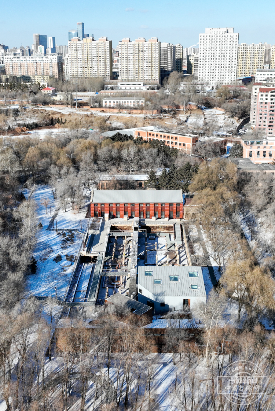 雪后的长春水文化生态园,银装素裹,工业遗存与雪景相映成趣,如水墨画般静谧,尽显北国冬日独特魅力。