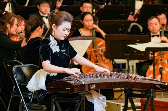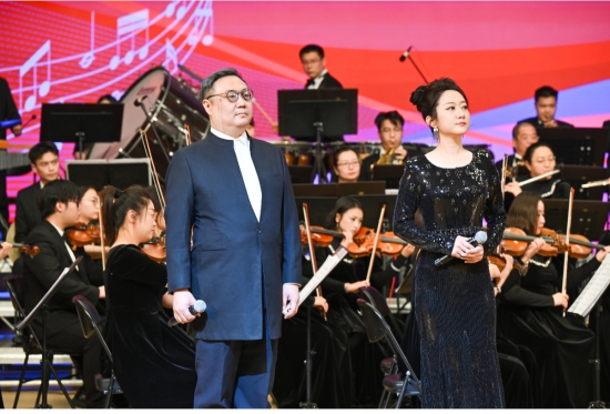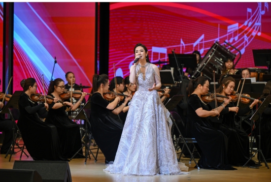 演出在气势恢宏的管弦乐《红旗颂》中磅礴开场,雄浑乐曲如红旗漫卷,生动诠释了新中国成立的庄严与豪迈,既是对革命岁月的历史回望,更是对国家崛起的深情礼赞。诞生于抗战烽火的《松花江上》,以沉郁悲怆的旋律唤醒对民族苦难的集体记忆;《冰凌花——永远的赵一曼》则通过现代交响编配,塑造了巾帼英雄赵一曼的冰雪傲骨,展现了革命信仰的永恒力量。当《花儿为什么这样红》的西域风情旋律响起,民族团结情怀与乐团细腻的音色处理相得益彰;歌曲《如愿》《追寻》等新时代作品与《我的祖国》形成时空对话,凸显了从革命岁月到新时代一脉相承的奋斗主题。