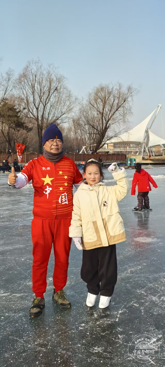 有孩子踉跄学步,身旁总有老人放缓速度,伸出温暖的手,轻声指导“脚要放平,身体前倾”;有少年飞驰而过,老人投以欣赏的目光,偶尔交流几句“内刃滑行”“压步转弯”的技术心得。冰场边,刚滑完一圈的奶奶笑着替小孙女整理围巾;阳光下,爷爷正给孙子讲述这块冰场如何从无到有,又如何成为许多人冬天的牵挂。