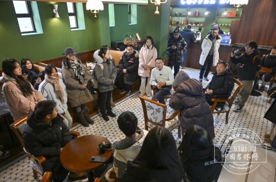 活动现场,吉林省全民阅读协会副会长张铭在书店咖啡厅内,为同学们带来了一堂生动的“历史课”。从建筑的百年变迁到背后的人文故事,从文字记载的岁月痕迹到精神内涵的代代相传,张铭的讲解让同学们沉浸式感受了历史建筑与文字创作的深厚连接。