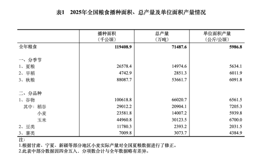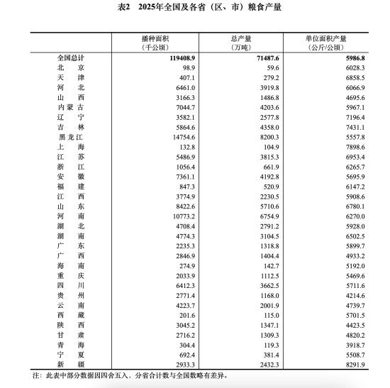中国吉林网获悉,12月12日,国家统计局发布关于2025年粮食产量数据的公告。