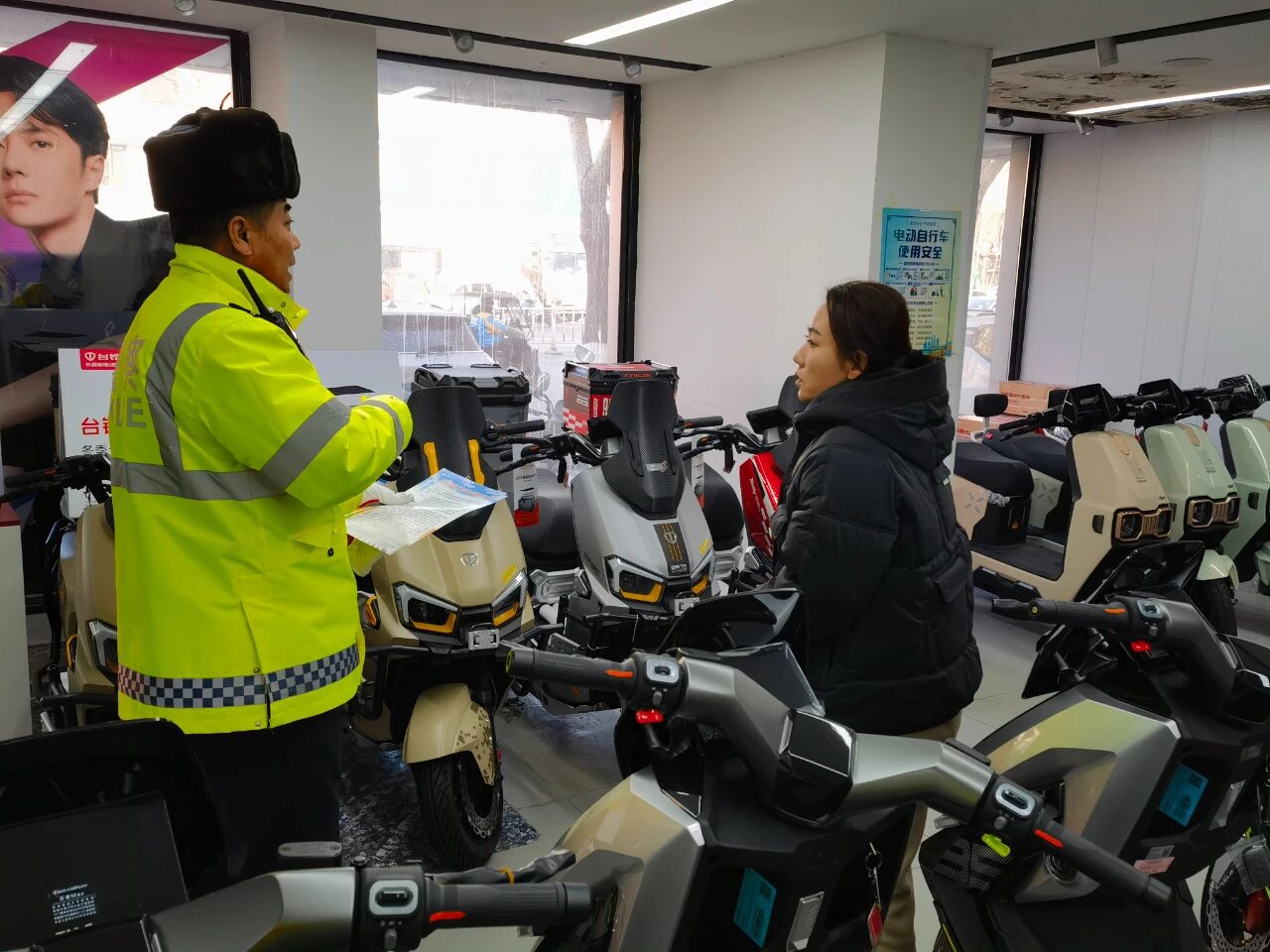 梅河新区公安局交通管理支队聚焦“源头管控 + 精准宣教”,组织警力深入辖区低速电动三、四轮车售卖商店,开展“守法出行 安全相伴”主题宣传活动。民警走进城区12家重点电动车销售门店,与店主、购车群众面对面交流,在门店前显眼位置张贴宣传横幅,提醒群众非标低速电动车禁止上路行驶,让群众在购车之初就树立 “安全第一、守法出行” 的理念。