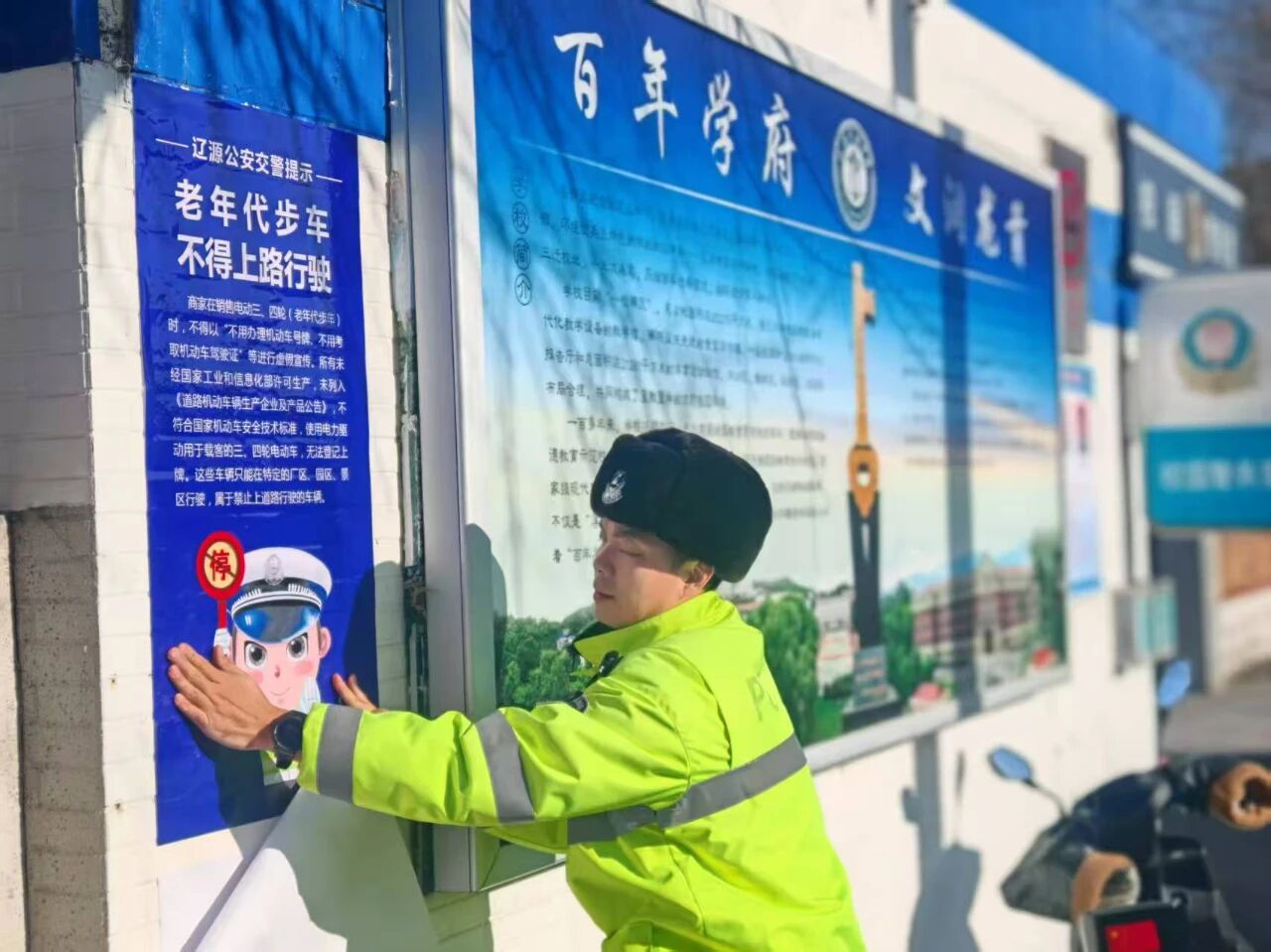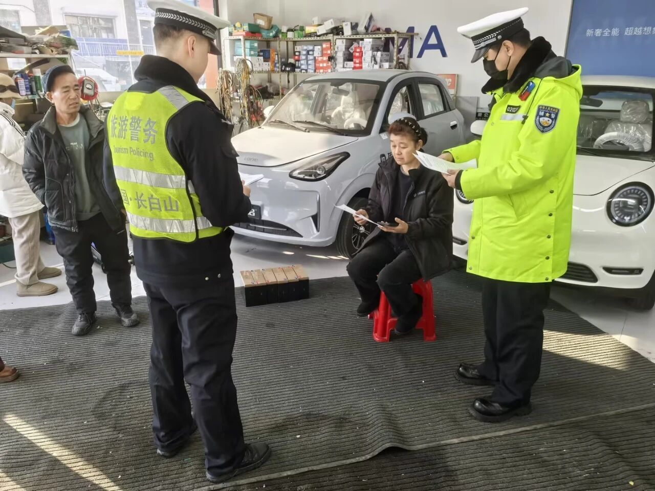 长白山公安局交管支队组织警力深入辖区中小学、居民社区、农村集市及电动车经销商处,开展全方位、多层次的集中宣传活动。他们通过在学校门口、社区公告栏、集市主要街路及店铺醒目位置悬挂宣传条幅、张贴集中整治通告,通过面对面讲解、以案说法,详细阐明非标电动四轮车(老年代步车)无牌无证、安全性能差、事故风险高的危害,明确了禁止其上道路行驶的法律依据和管理政策,并引导经销商规范经营,从源头把好关口。