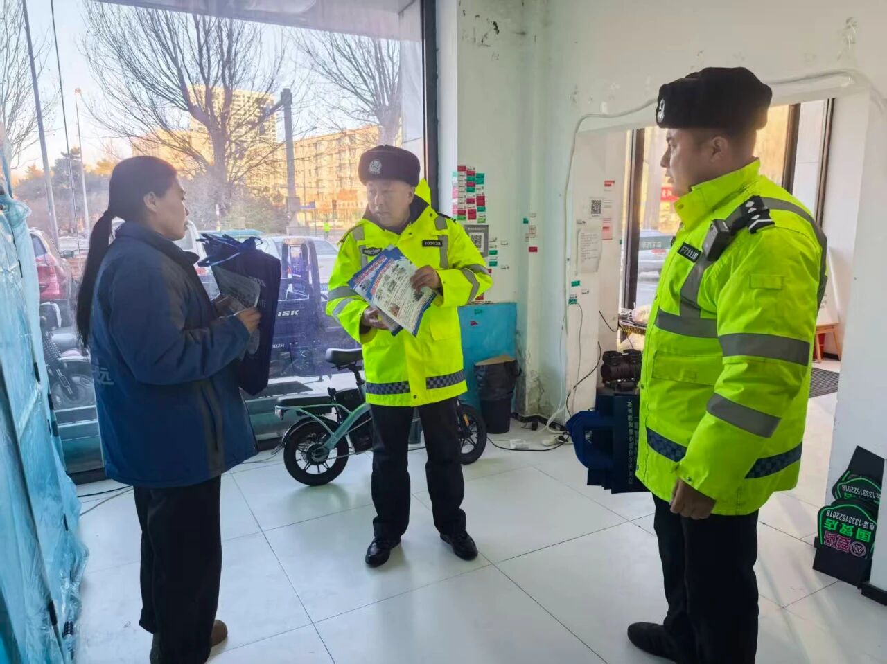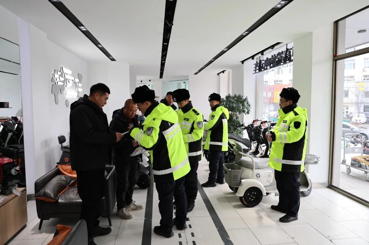 白城市公安局交通管理支队洮北大队深入辖区电动自行车销售门店, 以“政策解读+现场指导”的方式开展交通安全专项宣传。民警面向销售门店负责人及现场群众详细讲解道路交通安全知识,叮嘱负责人严格落实主体责任,提醒消费者骑行时应自觉遵守交通法规,正确佩戴安全头盔,拒绝非法改装车辆,摒弃闯红灯、逆行、占用机动车道、违规载人等交通陋习,共同做到安全出行、文明出行。