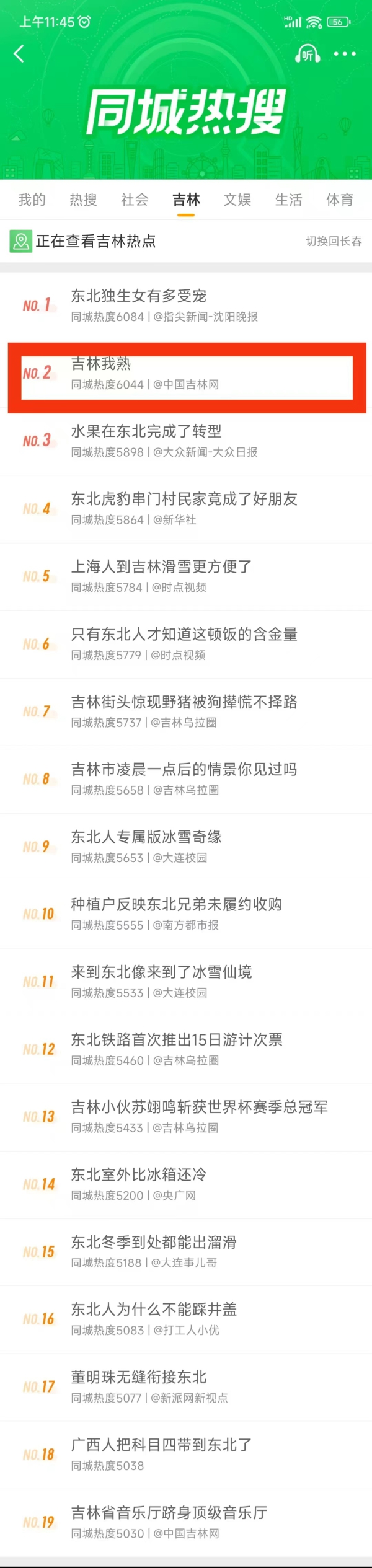 微博媒体联合中国吉林网官方微博“整活儿”,发起看见小城计划之吉林篇,引爆全网热议,#吉林我熟#话题迅速登录同城热搜,无数网友用镜头与文字,分享与这片土地的故事,让吉林的万千风情,被全世界看见!