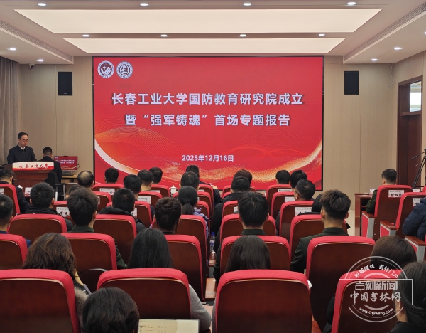 12月16日上午,长春工业大学国防教育研究院成立暨“强军铸魂”首场专题报告会在北湖校区举行。