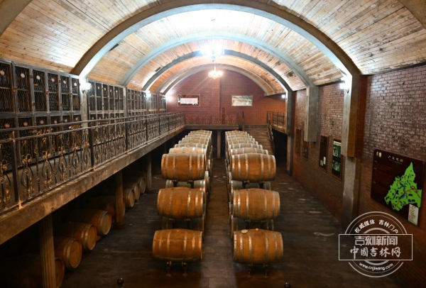 驱车前行,吉林斯普瑞酒业的地下文化展示区酒香四溢。讲解员站在记录三十年行业成就的荣誉墙前,指着身旁的生产工艺流程墙介绍:“展示了从葡萄采收后的破碎除梗、发酵、澄清,到过橡木桶、调配、过滤等的整个过程。”说到过滤,她特别提到公司的两个板块,一个是硅藻土过滤,一个是板块过滤,紧接着进行瞬时超高温灭菌,每一步都藏着匠心。在这里,还储存着不同年份、不同品类的葡萄酒,几年到十几年不等,在这里既能看到传统酿造技艺,也能感受到柳河山葡萄衍生出的文化。品尝一口公司的主打产品“小寒”,醇厚的口感在口中展开,像雪后山林间的风,清爽又耐品。