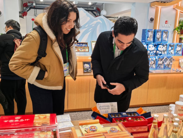 除了可爱新奇的文创产品外,人参专区也是采风团驻足停留之地,野山参粉成了“明星产品”,大家围着负责人采访吉林人参的历史和功效。供职于《土耳其光明报》的BALCI ONURCAN说:“过去我一直都是通过电视和报纸去了解中国的人参,这是我第一次看到真正的人参,我感到很新奇。”