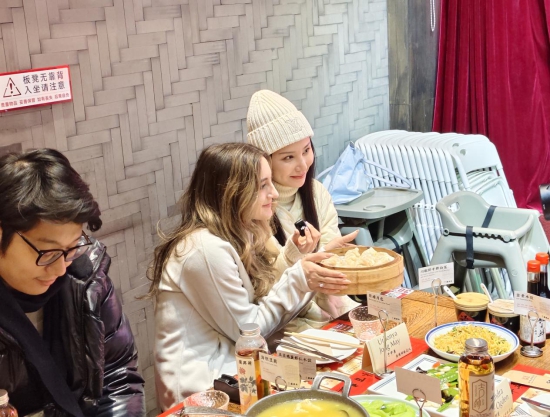 屋外是北国的寒冬,屋内却是另一番热闹景象——外国记者、网络达人们围坐桌前,品尝特色饺子,采风团成员们对这“中国味道”连连称赞。