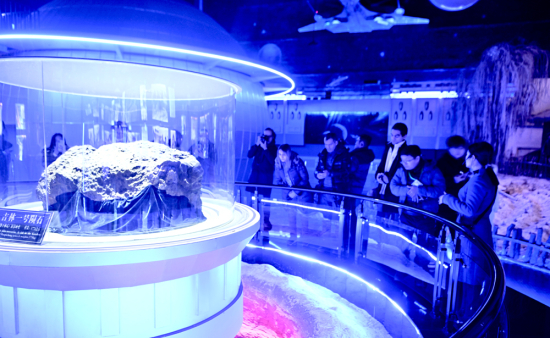 展厅内,参加由吉林省文化和旅游厅主办的“Hello冰雪Go吉林”国际媒体采风活动的20位媒体记者和网络达人,拿起手机、相机围着“宇宙使者、天外来客、镇馆之宝”拍个不停。