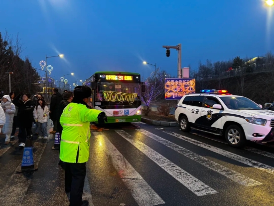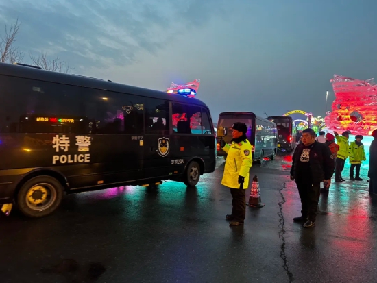 此次活动,长春交警共出动警力375人,巡逻车78台,摩托车4台,清障车7台,设置固定岗56处,步巡路段7条,无人机2架,景区周边道路通行井然有序。全体参战民辅警不畏严寒、坚守岗位,严格规范执勤,文明热情服务,高标准、高质量完成了第29届长春冰雪节开幕式暨长春冰雪之夜活动道路交通安保任务,以实际行动彰显了长春交警队伍的责任与担当,践行“人民公安为人民”的初心使命,为冰雪旅游季筑牢交通安全屏障。
