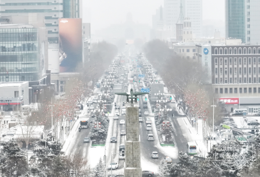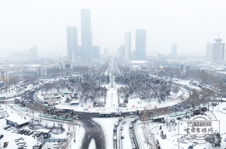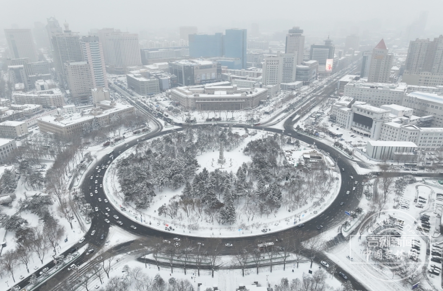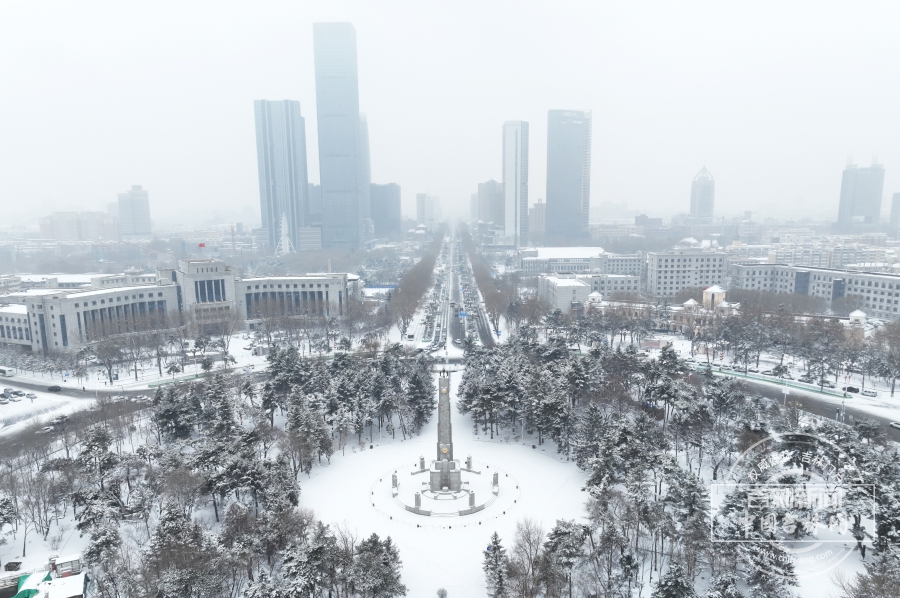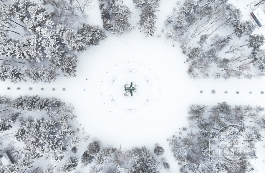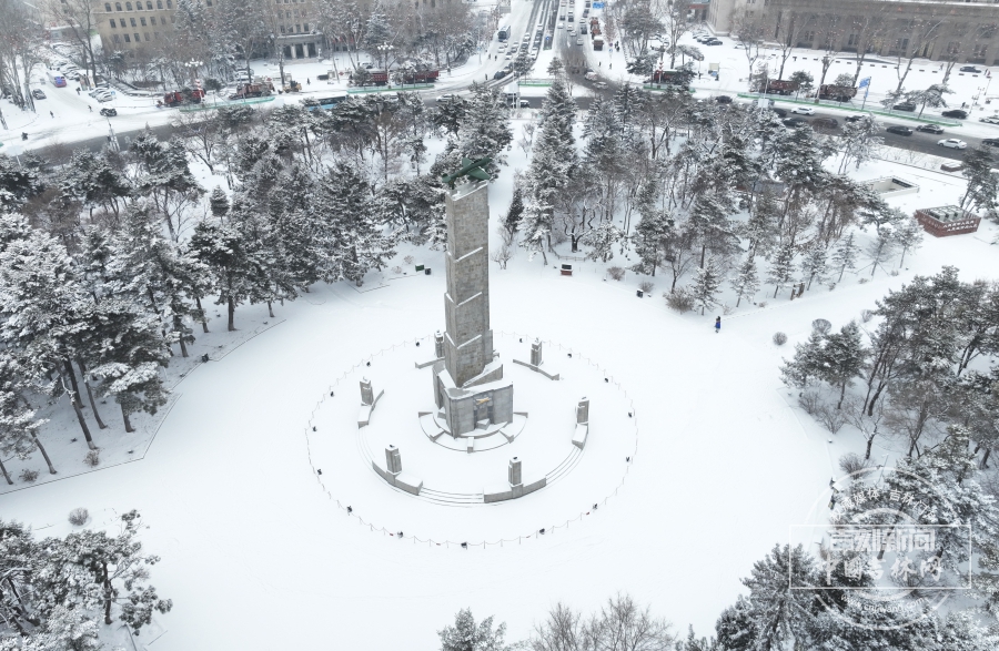 12月23日,长春迎来降雪天气,人民广场银装素裹,市民漫步其间,尽享静谧灵动冬韵。