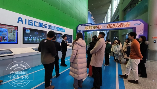 吉林广播电视台的“嗯呢”人工智能实验室,学子们观看了AIGC技术与吉林本地资源融合生成的创新成果,对AI如何在新闻生产环节为媒体服务,用新技术讲好时代故事有了新的感悟。