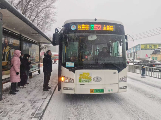 北达公司利用智能调度平台实时监控路况与客流变化,动态调整发车间隔,减少市民候车时间。各车队提前对运营车辆制动系统、轮胎防滑性能以及灯光、雨刮、暖风设备进行“体检”,为座椅铺上“爱心垫”,给扶手杆“穿”上“保暖衣”,并提前开启车厢暖风,确保运营车辆车况良好、充满“温度”。同时通过早班会、工作群等方式,强化驾驶员安全教育,叮嘱他们经过坡道、桥梁等重点路段时要谨慎驾驶,遇到老人、儿童等特殊乘客上下车时,要主动搀扶,给予帮助,切实用贴心举措为市民乘客提供暖心服务。