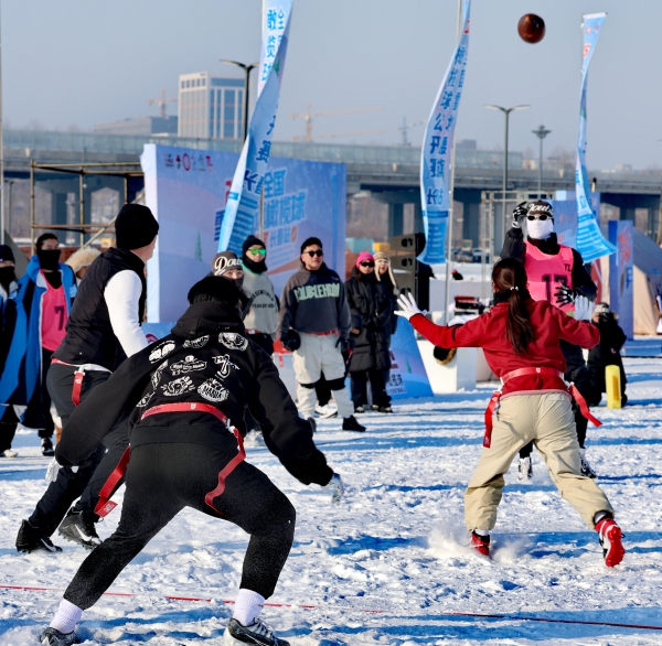 12月27日,全国雪地腰旗橄榄球公开赛(长春站)在净月高新区肆季南河岸线公园正式拉开帷幕。