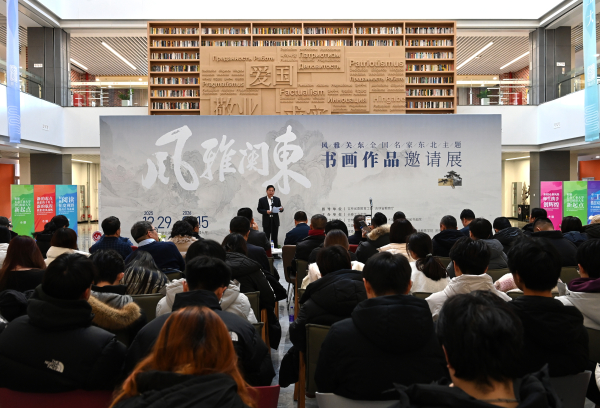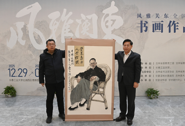 12月29日下午,“风雅关东——全国名家东北主题书画作品邀请展”在长春工业大学北湖校区博厚图书馆启幕。来自省内外的数十位知名书画艺术家、学者齐聚一堂,共同见证这一文化盛事。