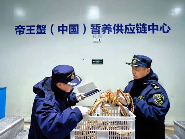 (长春海关所属长春兴隆海关关员监管“入区”鲜活帝王蟹)