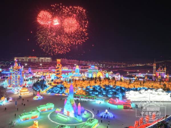 19时,万众期待的烟花秀如期上演。绚烂的烟花在夜空绽放,与冰雪景观交相辉映,将现场氛围推向高潮。