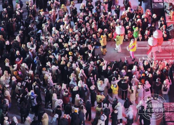 烟花秀后,雪地狂欢、蒙古族呼麦蹦迪以及歌舞《冰雪新天地》等环节接续登场,民族元素与电音节奏的碰撞,展现出独特的东北冰雪文化魅力。
