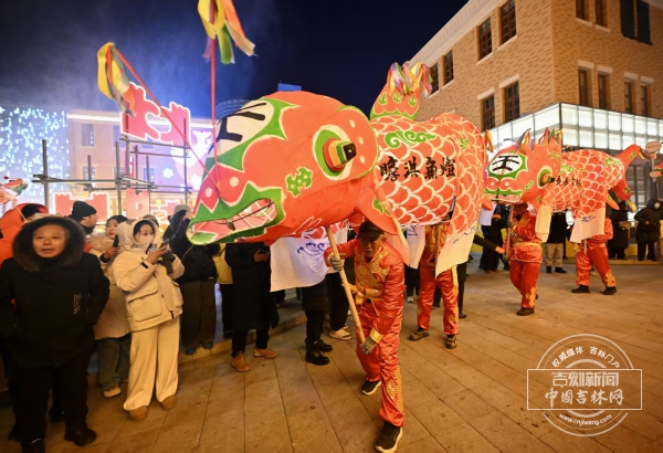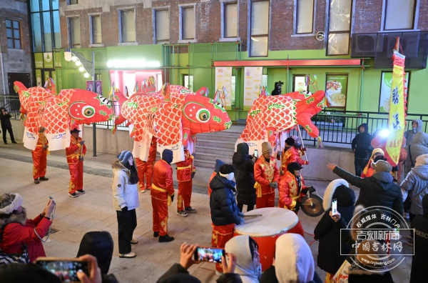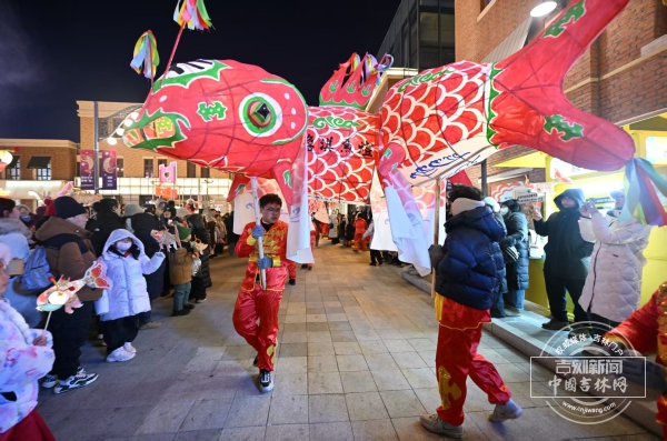 12月31日晚19时30分,春京西街区入口处,4盏巨型鱼灯被点亮,800年历史的安徽瞻淇传统在东北的寒夜中苏醒。这也是瞻淇鱼灯首次在东北地区大规模公开巡游。来自安徽瞻淇村的非遗传承人汪师傅激动地说:“我舞了四十年鱼灯,第一次在东北演出!”