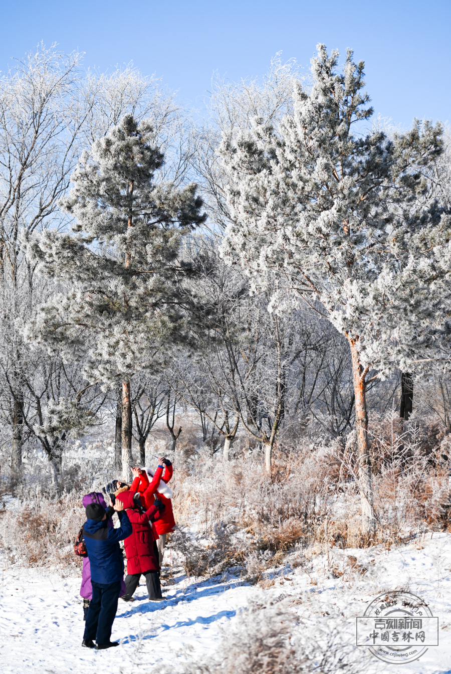 1月8日,长春市伊通河畔现绝美雾凇景观。河岸两旁玉树琼枝,晶莹闪烁,与冰河相互映衬,如诗如画,吸引市民游客驻足观赏拍照。