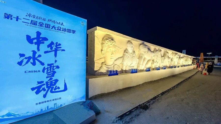 “中华冰雪魂”冠军雪雕墙,以赵伟昌、叶乔波、陈露、周洋、武大靖、李坚柔、齐广璞等为代表的优秀冰雪运动员,激励后来者勇敢追梦。声明:图片未经授权禁止转载使用。