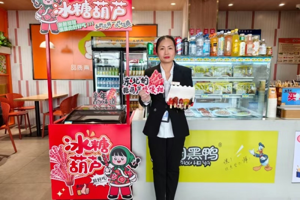 特色美味刚一亮相便圈粉无数。奶皮子网红糖葫芦堪称吸睛担当,红彤彤的山楂串外裹着脆薄糖衣,糖衣上还铺着一层奶香浓郁的奶皮子碎,咬下时“咔嚓”作响,酸甜果香混着醇厚奶香在舌尖迸发,成为候机厅里最治愈的味道;东北冻梨则解锁了贴心吃法,门店提前将黑亮饱满的冻梨用温水缓化,对半切开后露出清甜多汁的果肉,插上牙签供旅客即食,彻底避免“手被粘住”的小尴尬,让南方旅客轻松get东北独有的“冻感甜蜜”。