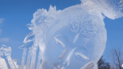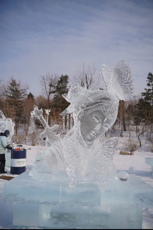以剔透的冰雕刻的“冰貂蝉”纤毫毕现