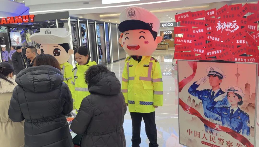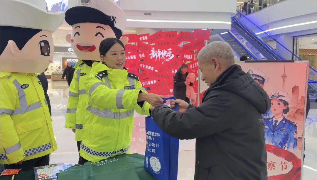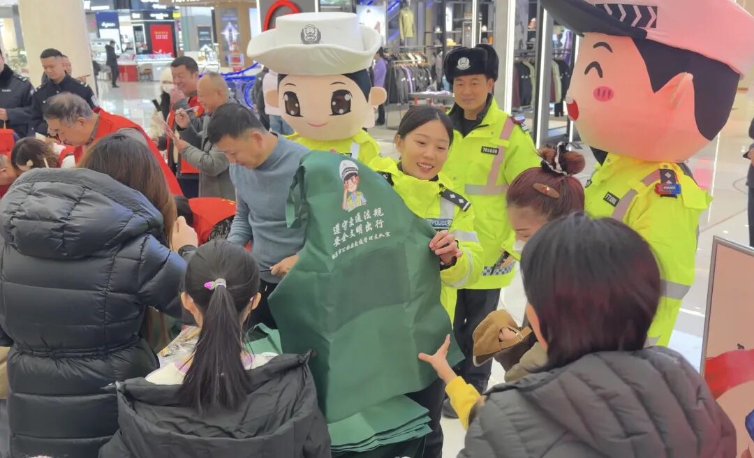 近日,松原市公安局交管支队组织民警走进辖区大型商场,开展了一场别开生面的交通安全宣传活动,以服务群众、传递安全的方式庆祝属于自己的节日,诠释“人民公安为人民”的初心与担当。