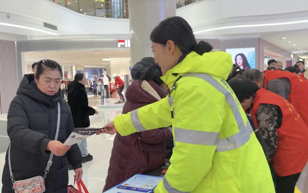在商场一楼大厅精心布置的宣传展台吸引了许多市民驻足,现场通过摆放展板、发放宣传资料等方式营造出浓厚的宣传氛围。民警们结合冬季出行特点,向市民耐心讲解不文明交通行为的危害性,重点普及了冰雪路面安全驾驶、行人与非机动车通行规范、“一盔一带”重要性等实用知识。