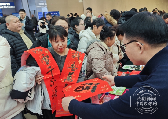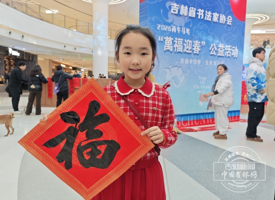 活动现场暖意融融、年味浓郁,红火的春联纸、饱满的笔墨香萦绕四周,市民游客有序排起长队,满心期待地等候专属的新春祝福。书家们凝神聚力,将对新年的期盼、对美好生活的祝愿凝于笔端,一撇一捺间尽显书法韵味。既有饱含吉祥寓意的“福”字、经典喜庆的春联,也有《龙马精神》《骏马踏春》《吉祥吉地》等紧扣马年主题、彰显吉林地域特色的书法佳作,每一幅作品都承载着深厚情谊,赢得了现场群众的阵阵喝彩,让大家在笔墨氤氲中感受传统文化的魅力,为即将到来的新春佳节增添了浓厚的文化底蕴。