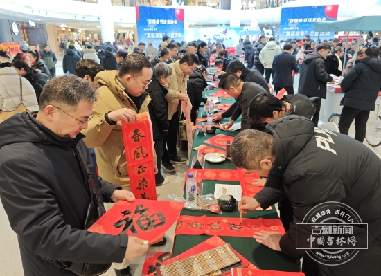 1月17日,“我们的中国梦·文化进万家”吉林省书协丙午马年“万福迎春”公益活动走进长春万达茂,三十余位书法名家现场挥毫泼墨,为市民游客书写春联、送上新春祝福,助力吉林冰雪季热潮,正式拉开了全省范围内“万福迎春”公益活动的序幕。