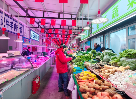 在朝阳区,过年的氛围感已经慢慢展现。红旗商城一进门就是红彤彤的灯笼。桂林路市场里市民购买着新衣服,准备过年穿。“过年得有仪式感,给孩子买一身衣服。”郭女士给自己的小孙女买了一身红色的衣服,又转到另一侧买了准备贴在门上的对联。而在宽平大桥附近的老牌早市电影城市场已经从路边搬进了室内,分区经营,井井有条。“这儿便宜,附近饭店都上这儿买菜。”市民李女士说,趁着价格还没涨起来,李女士买了肉,加工成香肠,等过年吃。湖西路农贸市场也是附近居民的最爱,“夏天早市摆老远了,冬天就上室内买,不仅有蔬菜、肉蛋啥的,楼下还有小商品,快过年了,买点筷子和碗,这可是有讲究的,添丁进口!”市民张女士笑着说。