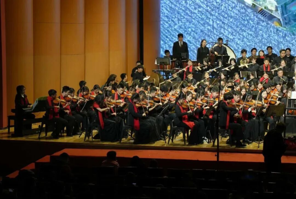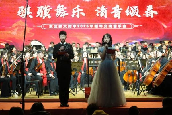 2026年1月17日晚,由东北师大附中主办的“骐骥舞乐 清音颂春”新春交响音乐会,在长影音乐厅温情上演。东北师大附中交响乐团以青春之姿、饱满之情,奏响多首动人乐章,在凛冬之夜留下了温暖而澎湃的附中回响。本场音乐会由初二1班张博惟、初一9班谢宛辰主持。