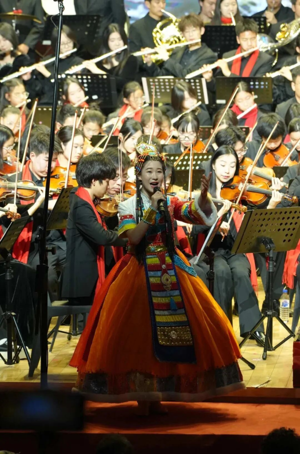 上半场音乐会在英雄史诗《江格尔》的恢弘乐声中拉开帷幕。作品以草原史诗的磅礴气势,结合交响乐与演员的精湛演绎,瞬间将观众带入广阔的天地之中。随后,乐团以细腻的笔触勾勒出《青藏高原》的苍茫画卷,用音符铺展出雪域高原的壮阔与神秘;又借助交响叙事重构《我乃哪吒三太子》的神话风骨,在激昂旋律中再现少年英雄的桀骜与神勇。当与贝多芬《命运交响曲》的乐章隔空对话时,不同文化语境下的生命叩问与抗争精神相互碰撞,迸发出思想的火花,引发跨越时空的深刻共鸣。上半场终章,一曲深情的《我的中国心》如暖流涌动,以赤子情怀诉说对家国的眷恋,为这场贯通古今、融汇中西的音乐之旅,画上了余韵悠长的句点。