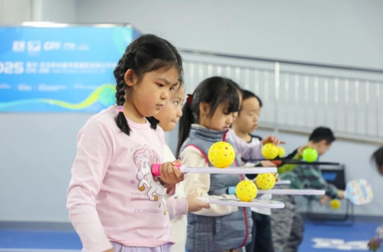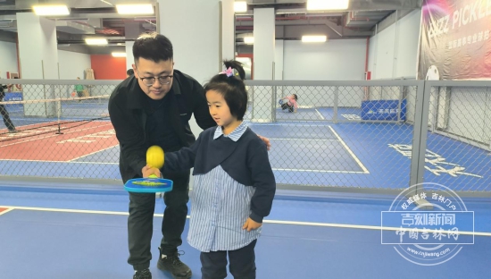 匹克球训练场上,孩子们或训练颠球或隔网对战,击球声、欢笑声此起彼伏。