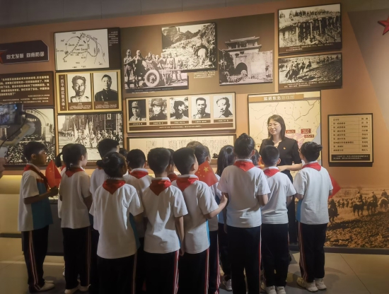 “纸上得来终觉浅,绝知此事要躬行。”程迎飞认为,思政教育不能只停留在课堂上、书本里,必须让学生在实践中感悟、在体验中成长。于是她依托校地协同平台,带领团队深度参与“学党史 沐党恩 传承红色基因”“跟着总书记的脚步看‘五色吉林’”两大实践活动。牵头组建校本教研团队,历时三个月将高校理论框架与四平地方特色深度结合,让吉林的“红色血脉、绿色底蕴、金色丰收、蓝色创新、银色冰雪”成为生动的思政教材。并与高校专家、初高中教师共研红色教育学段衔接逻辑,将宏大的党史叙事转化为“小切口、大主题”的课堂内容:低年级学生通过角色扮演还原革命场景,中高年级学生开展红色故事宣讲,让红色基因在趣味互动中根植童心。