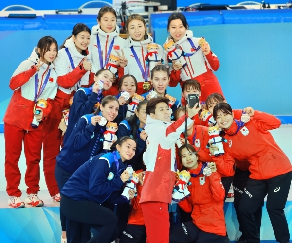 张楚桐亚冬会夺冠后与队友庆祝(资料图片)