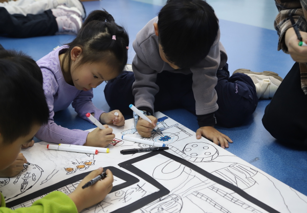 “互绘家乡”画卷创作是本次活动的核心环节,吉桂少年结对执笔,在两地老师指导下,以童真视角共绘“心中的他乡”。